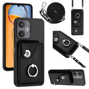 PU Leather Wallet Case for Xiaomi Redmi 13C 4G 5G with Crossbody Strap Lanyard Case