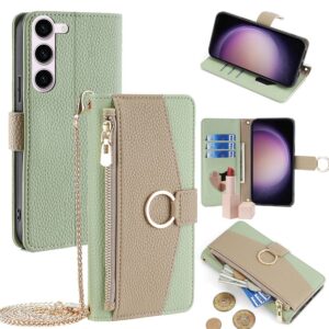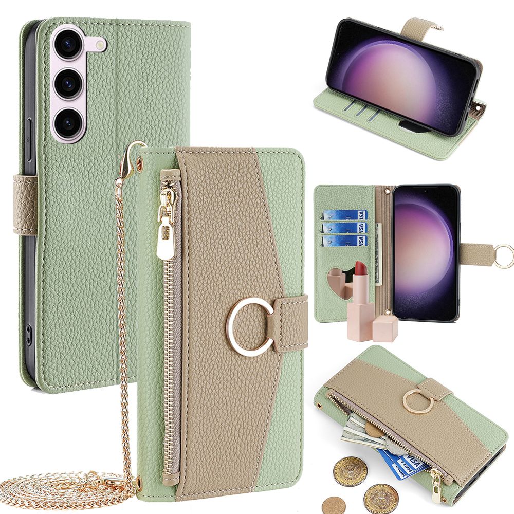 Wallet Case for Samsung Galaxy S24 S23 S22 S21 Ultra, Galaxy S23 S21 Plus/FE with Card Slots and Cash Slot Flip Folio Zipper Wallet Removable Shoulder Strap with Makeup Mirror