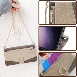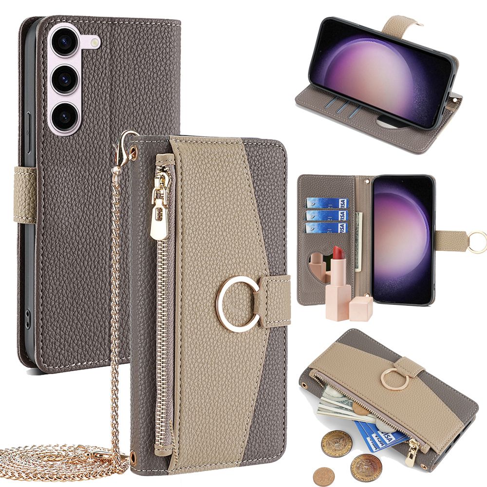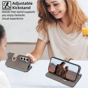 Wallet Case for Samsung Galaxy A55 A54 A35 A25 A15 A05 5G/4G, Xcover7 5G with Card Slots and Cash Slot Flip Folio Zipper Wallet Removable Shoulder Strap with Makeup Mirror
