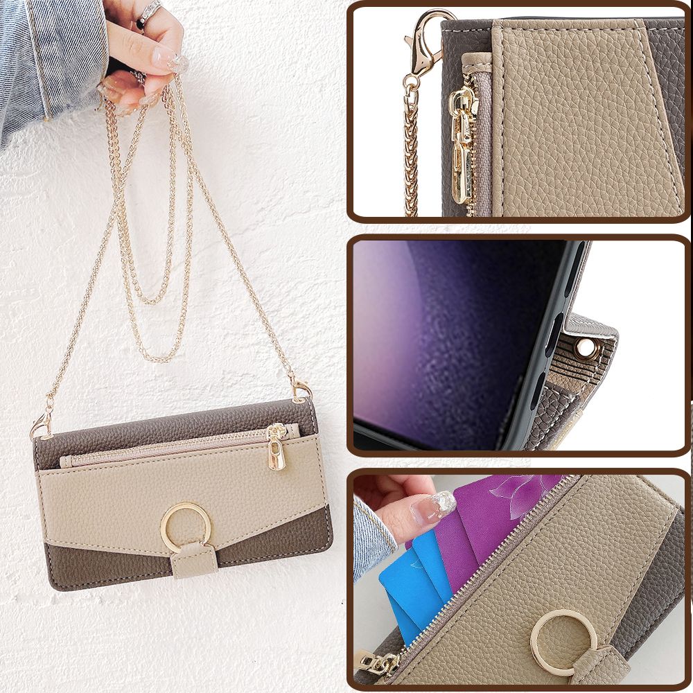 REMOVABLE SHOULDER CHAIN STRAP – Fashion meets functionality with the detachable metal chain shoulder strap, allowing you to carry your phone hands-free or transform it into a stylish crossbody bag.